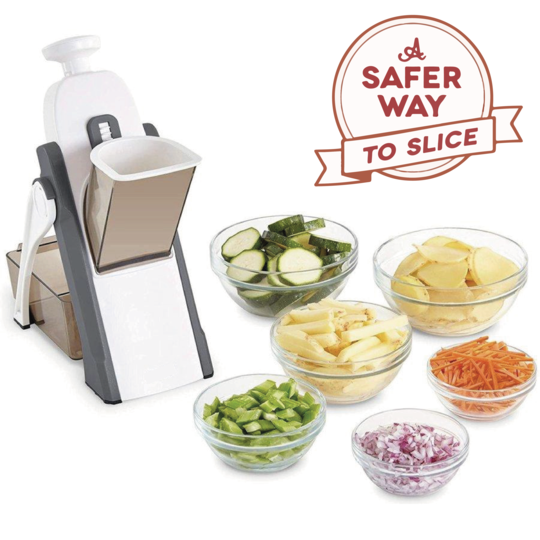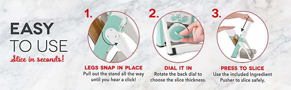 • SAFER: The unique design prevents your hands from ever going near the built-in blades, making this slicer the safest option for an expert slice. Height-14 inch, Width-4.7 inch, Length-11 inch