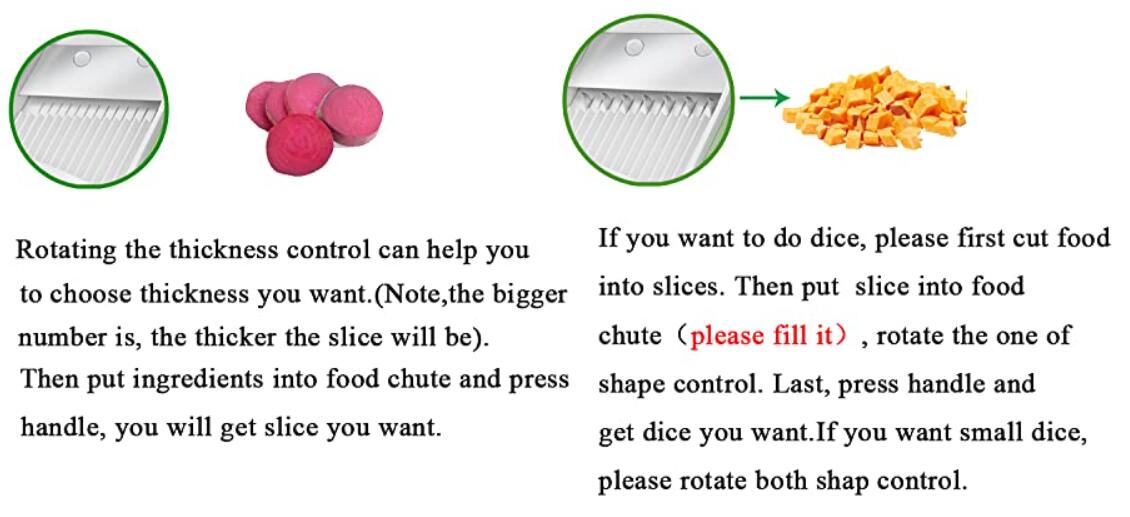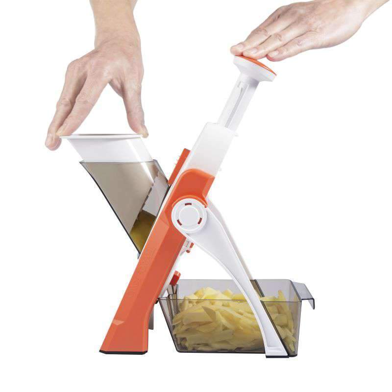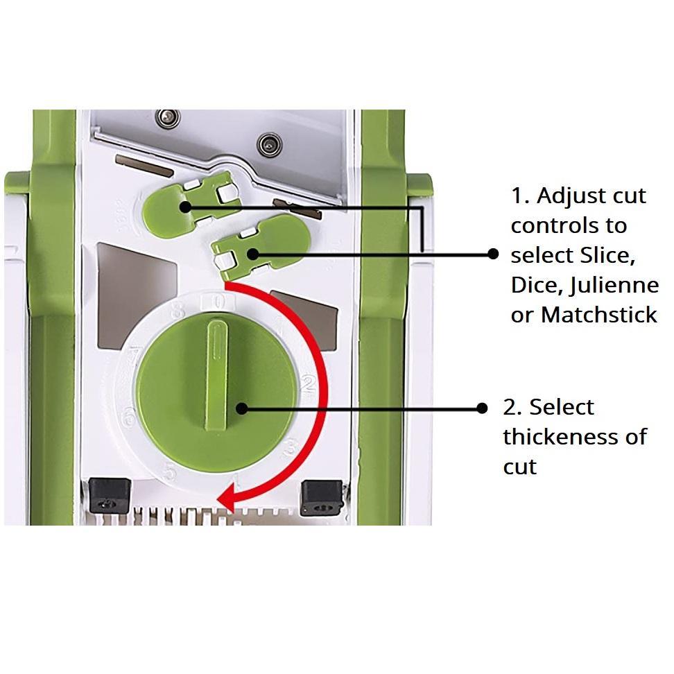 • VERSATILE: With 30+ slicing options, the slicer cuts perfectly-even slices from 1-8mm in thickness while also offering julienne, matchstick and dicing options.