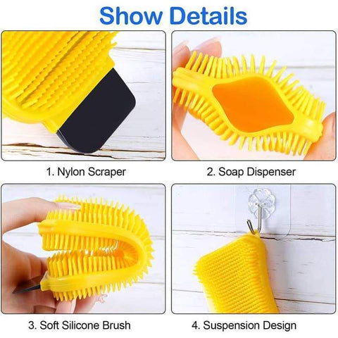 3-in-1 long-lasting Silicone Cleaning Brush makes kitchen cleaning much easier & will never tear, break or smell!