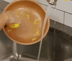 Built-in squeegee pushes food off plates and countertops