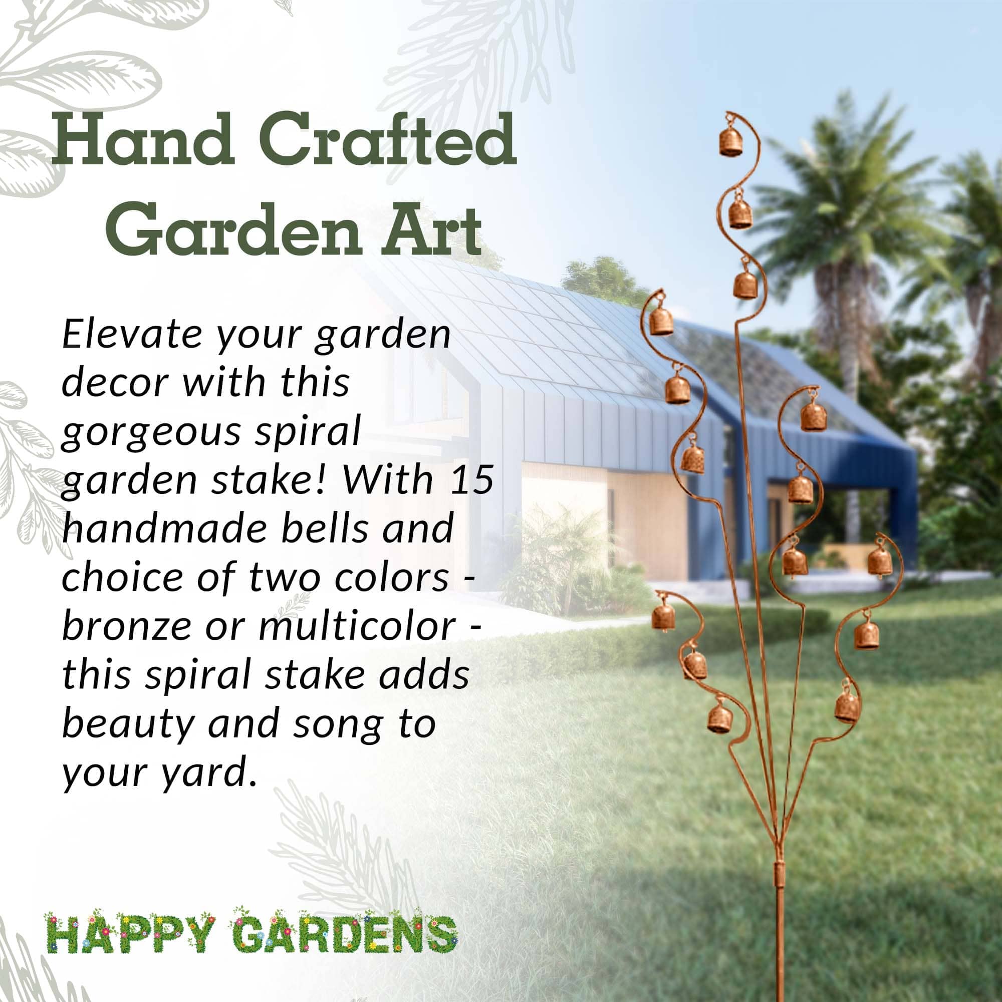Invite new sights and sounds into your outdoor space with this breathtaking garden stake. Perched at over four feet tall, this piece will instantly elevate any garden with its unexpected curves and 15 handcrafted, beautiful bells. Try placing it in a grassy yard, or make a statement by clustering it with your favorite tree. Wherever you stake it, rest assured that this carefully detailed garden stake will bring style and song to your home for years to come.