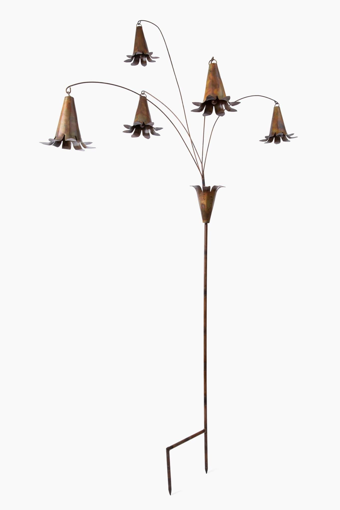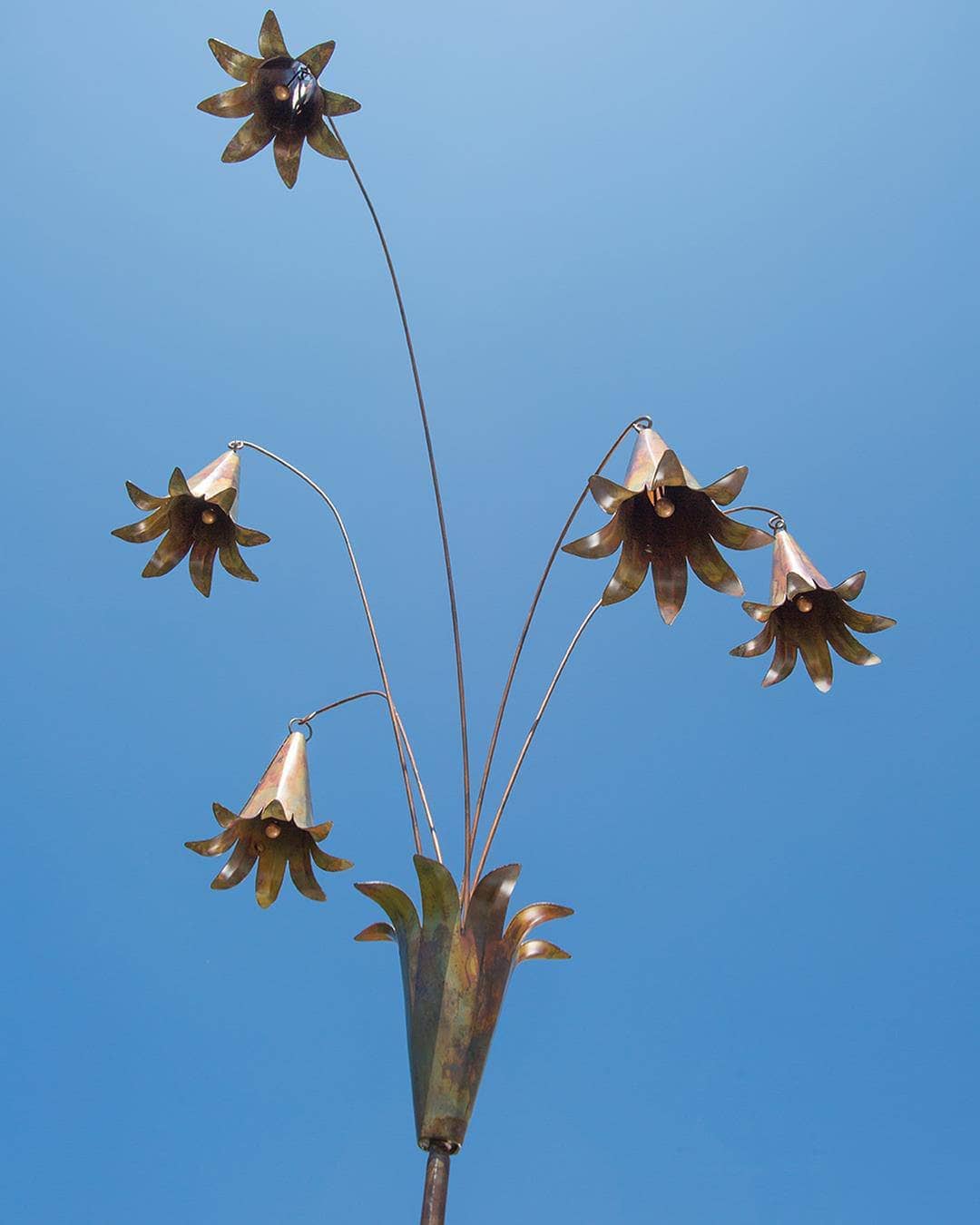 Simply enchanting! A gorgeous sculpture that looks marvelous alone or combined with other garden art, our Flamed Bluebells Garden Stake is sure to please. Each of the five bluebells offers graceful beauty while swaying gently as breezes blow. A flamed metal finish imparts a soft, glowing touch of color. Like all décor from our Happy Gardens collection, this garden stake has been individually handcrafted, and will bring lasting beauty to your home’s landscape.