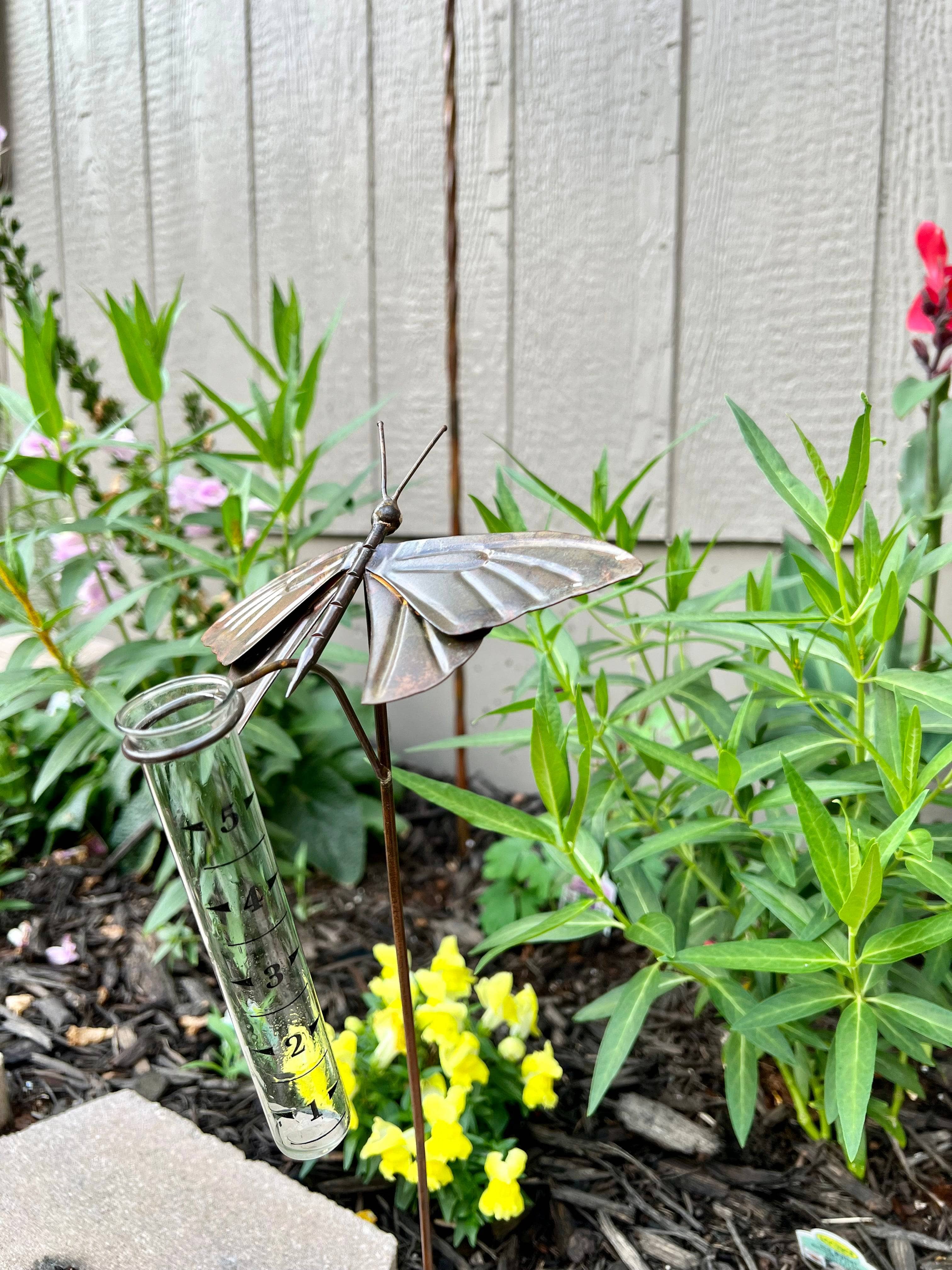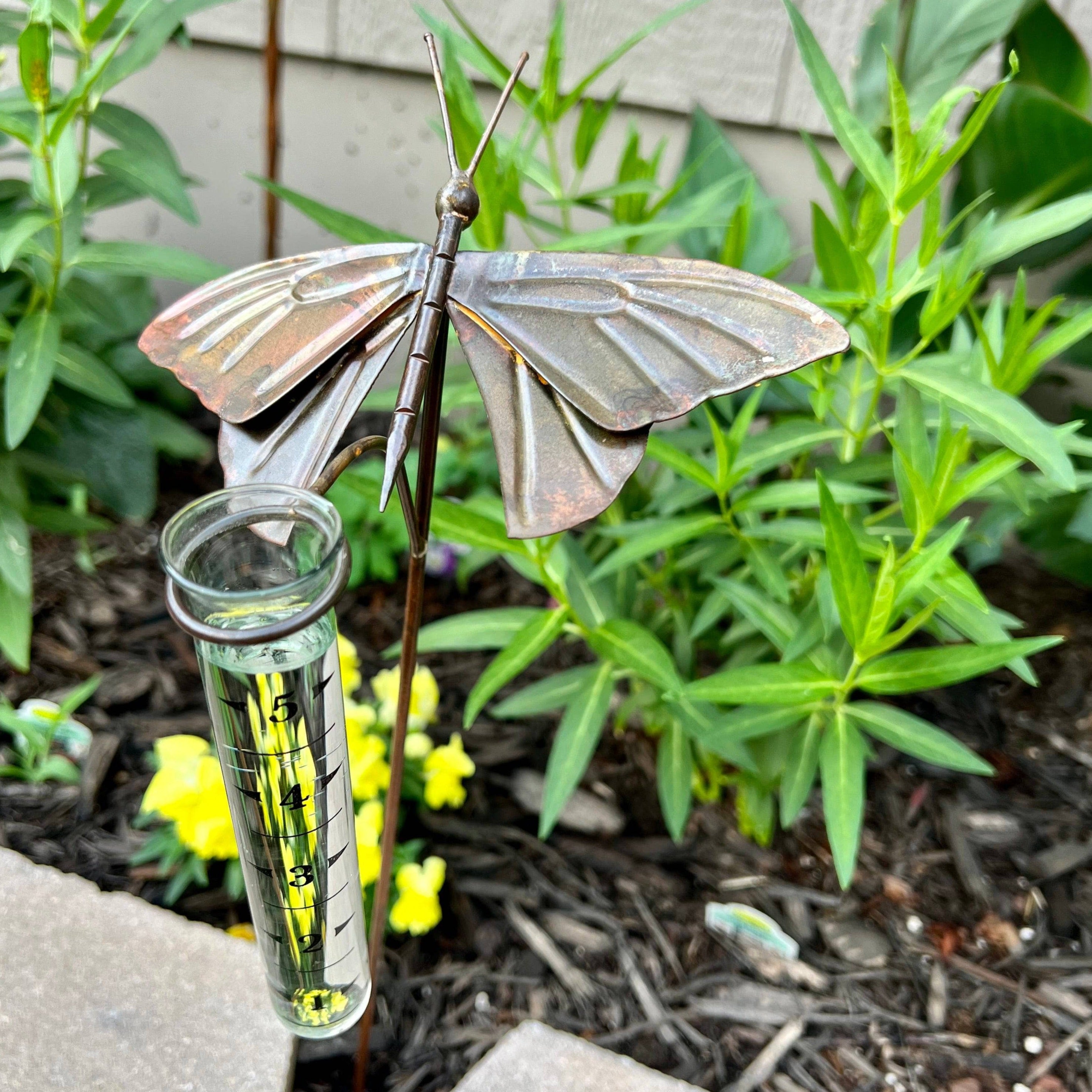 Every gardener knows the importance of rain gauges, especially when growing fruits, vegetables and herbs! With the Butterfly Rain Gauge, you won’t have to compromise beauty for utility. This gorgeous piece features a butterfly topped with a flamed metal finish. Who said helpful couldn’t also be beautiful? Like all of our Happy Gardens rain gauges, this item is individually handcrafted, and will last many rainy seasons.