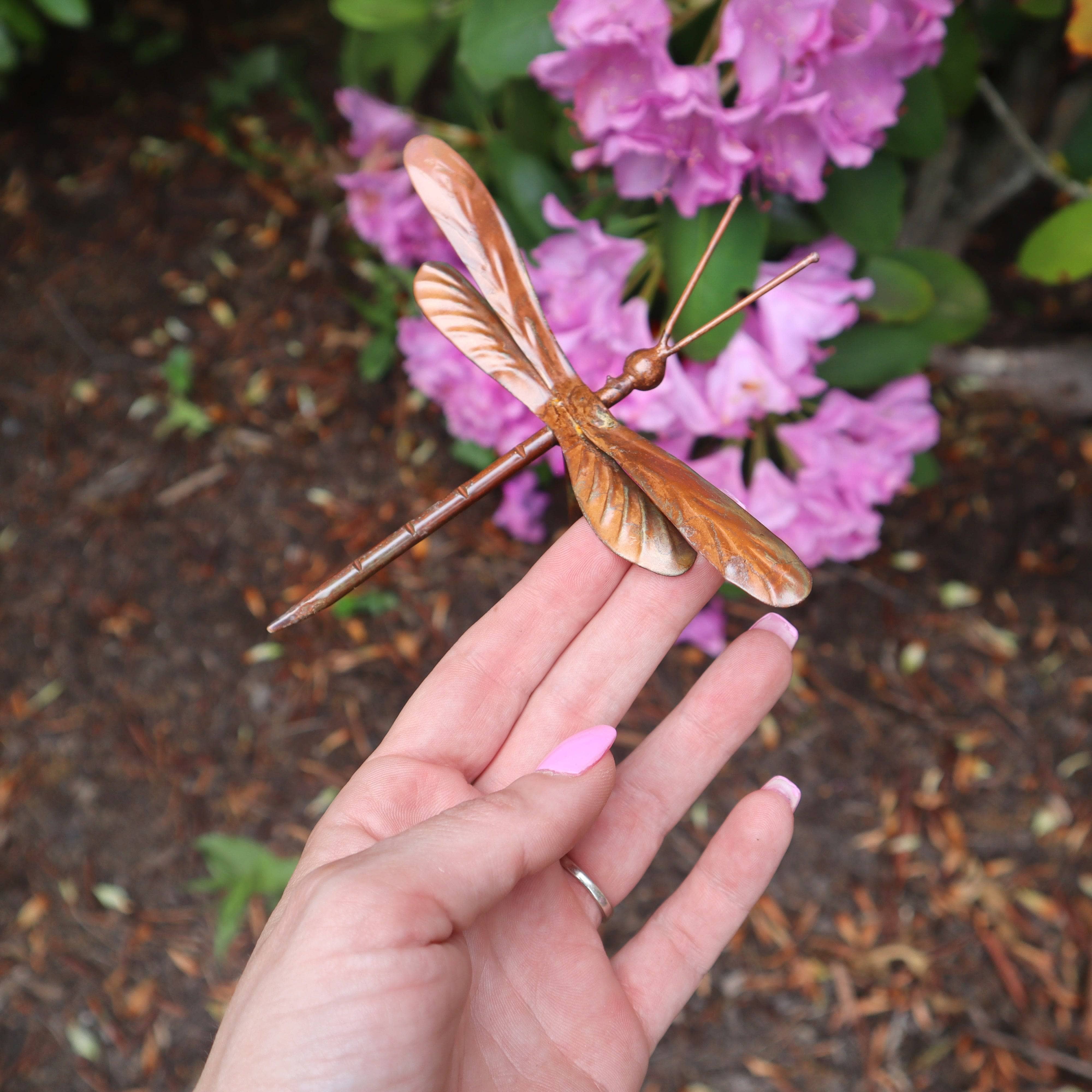From the tips of her antennae to the end of her tail, our Dragonfly Garden Stake offers beautiful details while gracing your landscape with a flash of iridescent color. Perfect for a flowerbed and fantastic for a pot too, this piece looks lovely by itself or as part of a larger display. Like all Happy Gardens stakes, this one is handcrafted, and will bring lasting beauty to your lawn or garden.