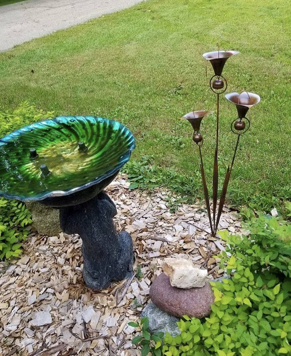Bring a touch of elegance to any garden or landscape with this flamed Triple Calla Lily Garden Stake. This “wow”-worthy garden stake features a trio of sculpted lilies and several round bells that chime gently in the breeze.