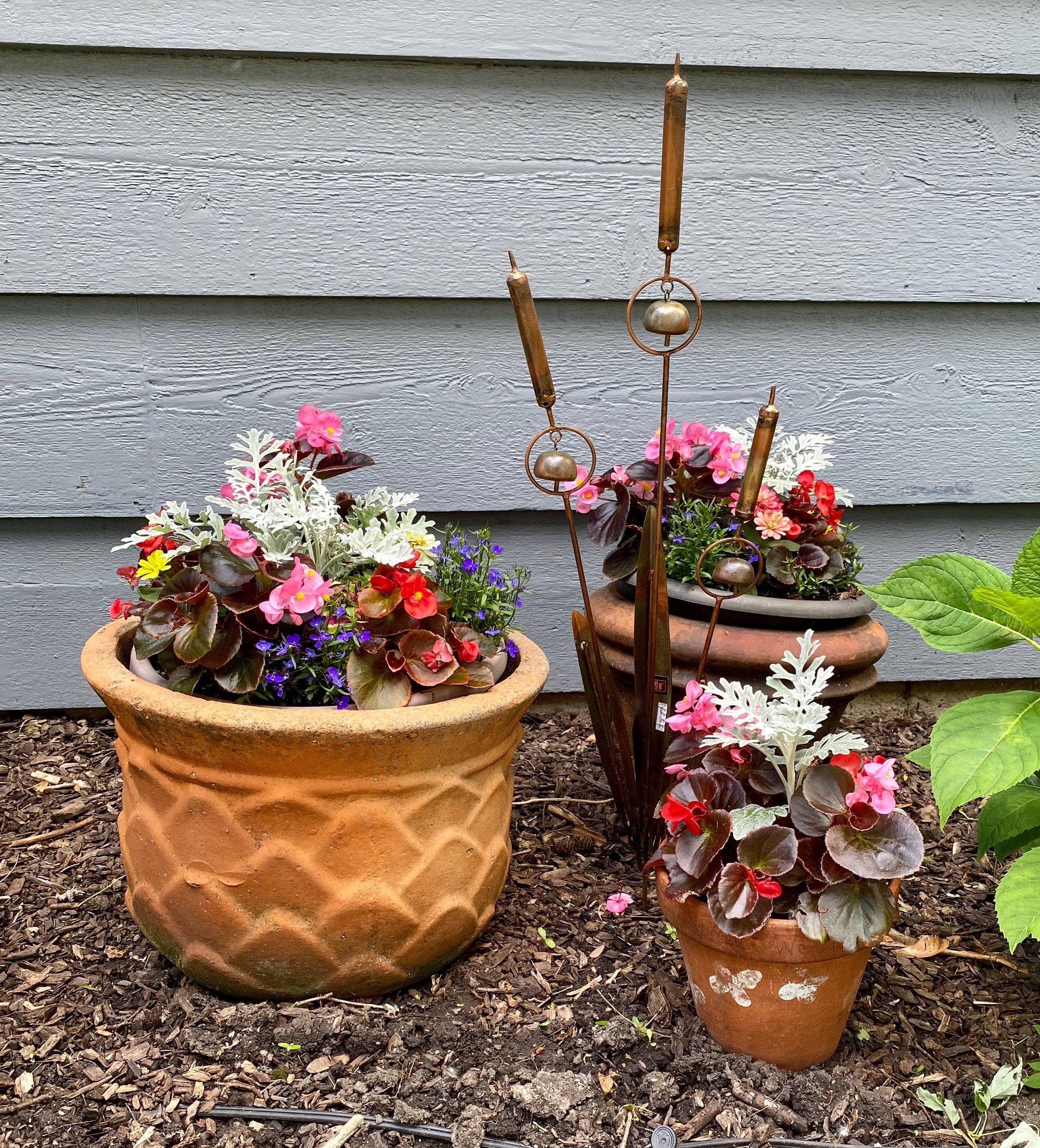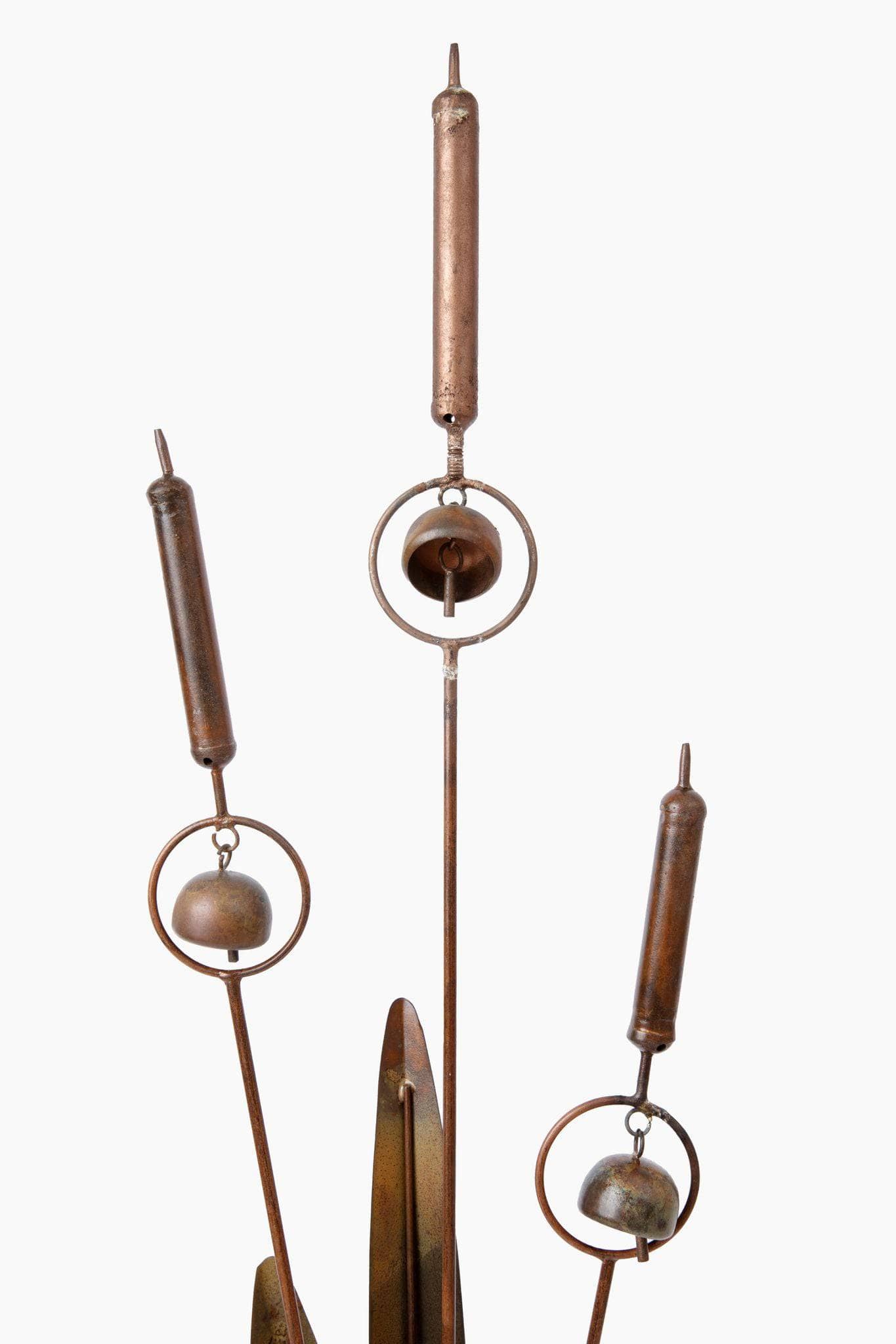 Simply gorgeous! Perfect for placement alongside your favorite water feature or anywhere else in your landscape, our Flamed Triple Cattail Garden Stake offers many marvelous details. With a beautiful flamed metal finish that provides a softly iridescent glow, this sculpture is perfectly balanced, and includes a trio of rounded bells that chime softly as breezes blow. Wonderful on its own or combined with other décor, it’s certain to be a favorite. Like all décor from our Happy Gardens collection, this garden stake has been individually handcrafted, and will bring lasting beauty to your landscape.
